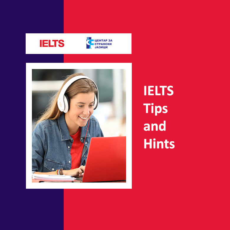 Отсега ќе можете да постигнете подобри резултати на испитот IELTS преку работилницата IELTS Tips & Hints која ја организира Центарот за странски јазици - Скопје. На оваа работилница ќе се запознаете со структурата и содржината на испитот, како за општата така и за академската верзија од тестот фокусирајќи се на техниките на полагање на испитот за сите четири дела. Работилницата се одржува онлајн, еднаш месечно, во сабота од 10:00 до 14:00 часот.